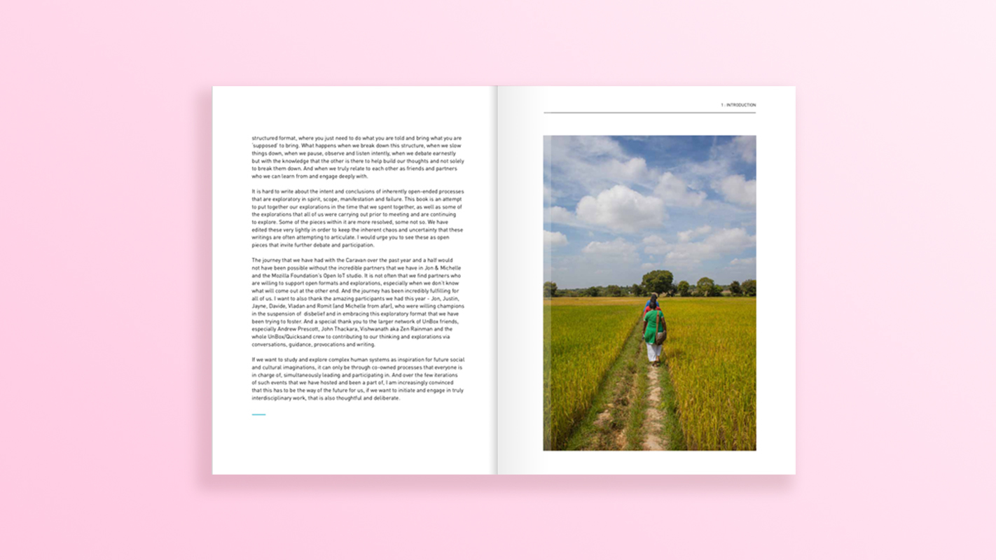 The intent of UnBox Caravan is to bring together a group of interesting and interested people to explore our collective technology futures through multicultural and interdisciplinary lenses. Over several gatherings a specific focus on the Internet of Things (IoT) emerged, and became a key exploration point for this edition of the Caravan. This publication provides a window into the conversations and outcomes of the event.
